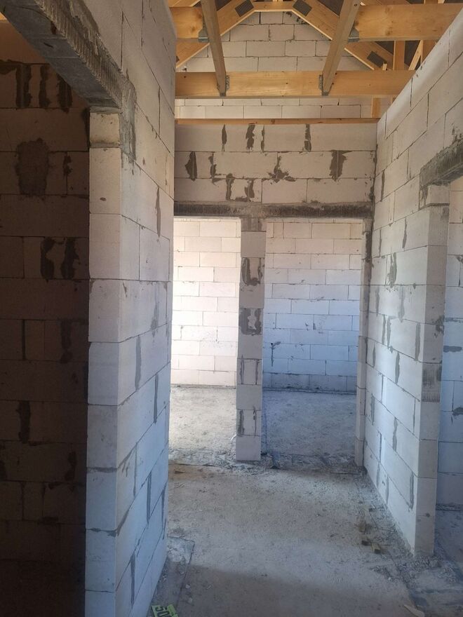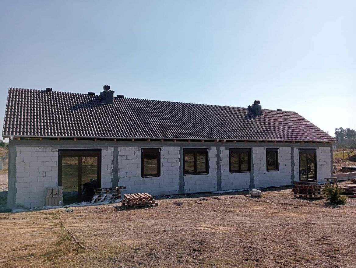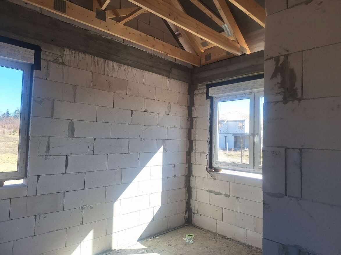 Dom jest sprzedawany jako dom po odbiorze, w stanie deweloperskim- elektryka, hydraulika, tynki, kontaktu ogrodzenie siatką panelową z 3 stron.